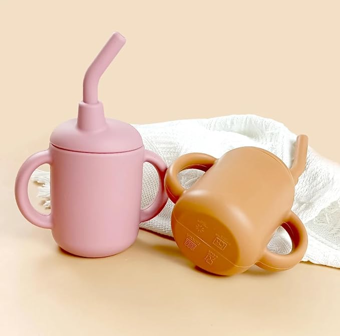 Baby Sippy Cup with Straw, BPA Free, Food Grade Silicone Sippy Cup, Suitable for Teething Babies