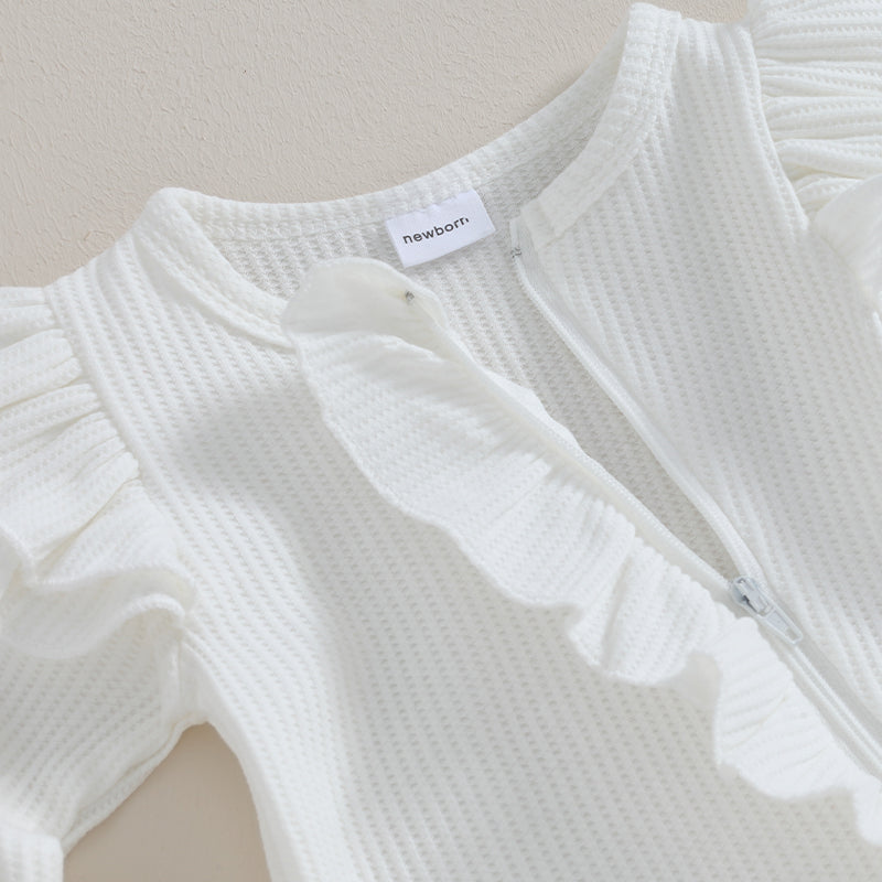 Newborn Infant Girls Solid Color Jumpsuits Baby Long Sleeve Ruffle Zipper Romper with Headband Sets Baby Clothes Spring Fall