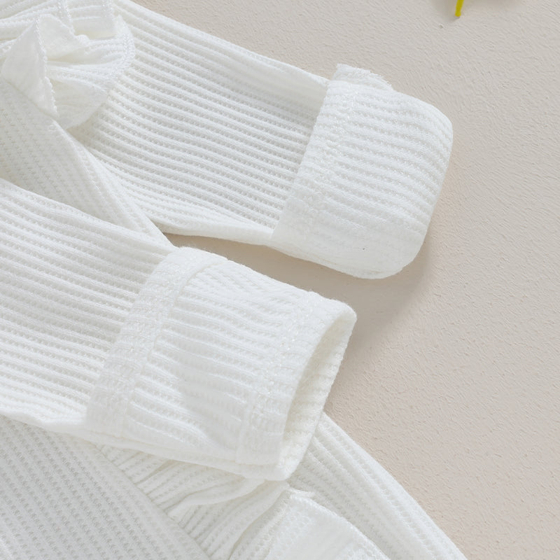 Infant Girl Autumn Jumpsuit Solid Color Round Neck Flying Sleeve Ruffled Zipper Romper with Bow Headband